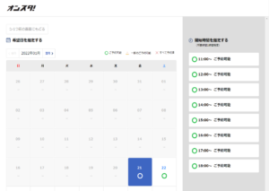予約日時選択画面から日付と時間帯を選択して予約に進みます。